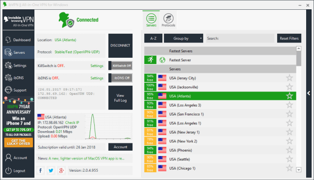 他们提供 Open加速器 和 PPTP 协议。使用上限或无限选项。